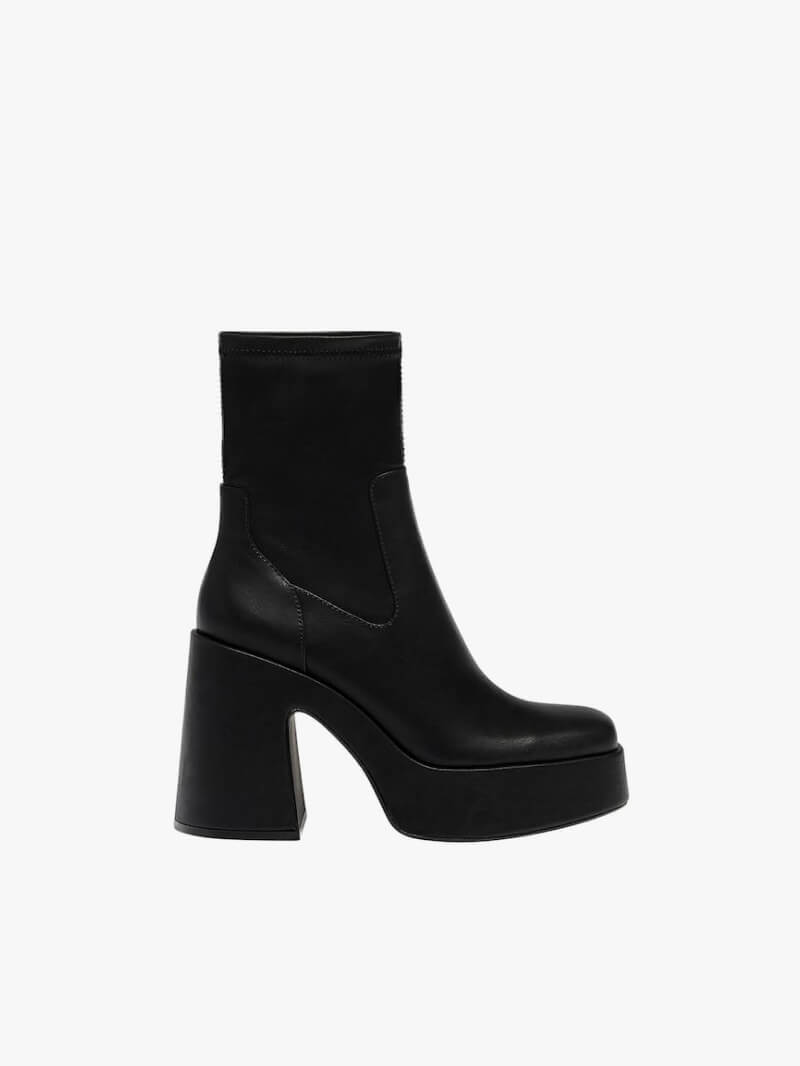 High-heel platform ankle boots. Available in several colours. Stretch sock-style leg. Heel height: 11 cm....