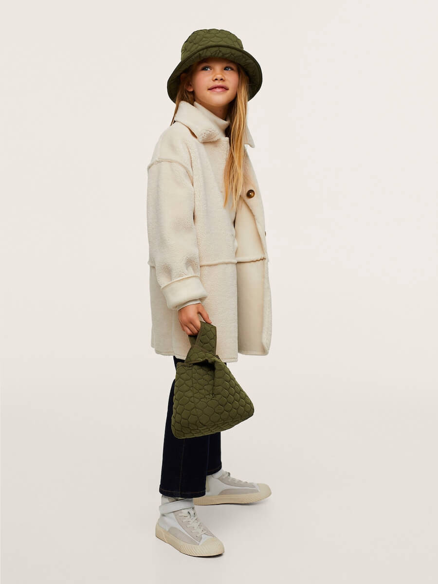 Lightweight coat with lapel collar and long sleeves. Front button closure. Front pockets.
