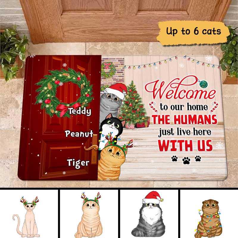 Welcome Home Cats Christmas Personalized Doormat